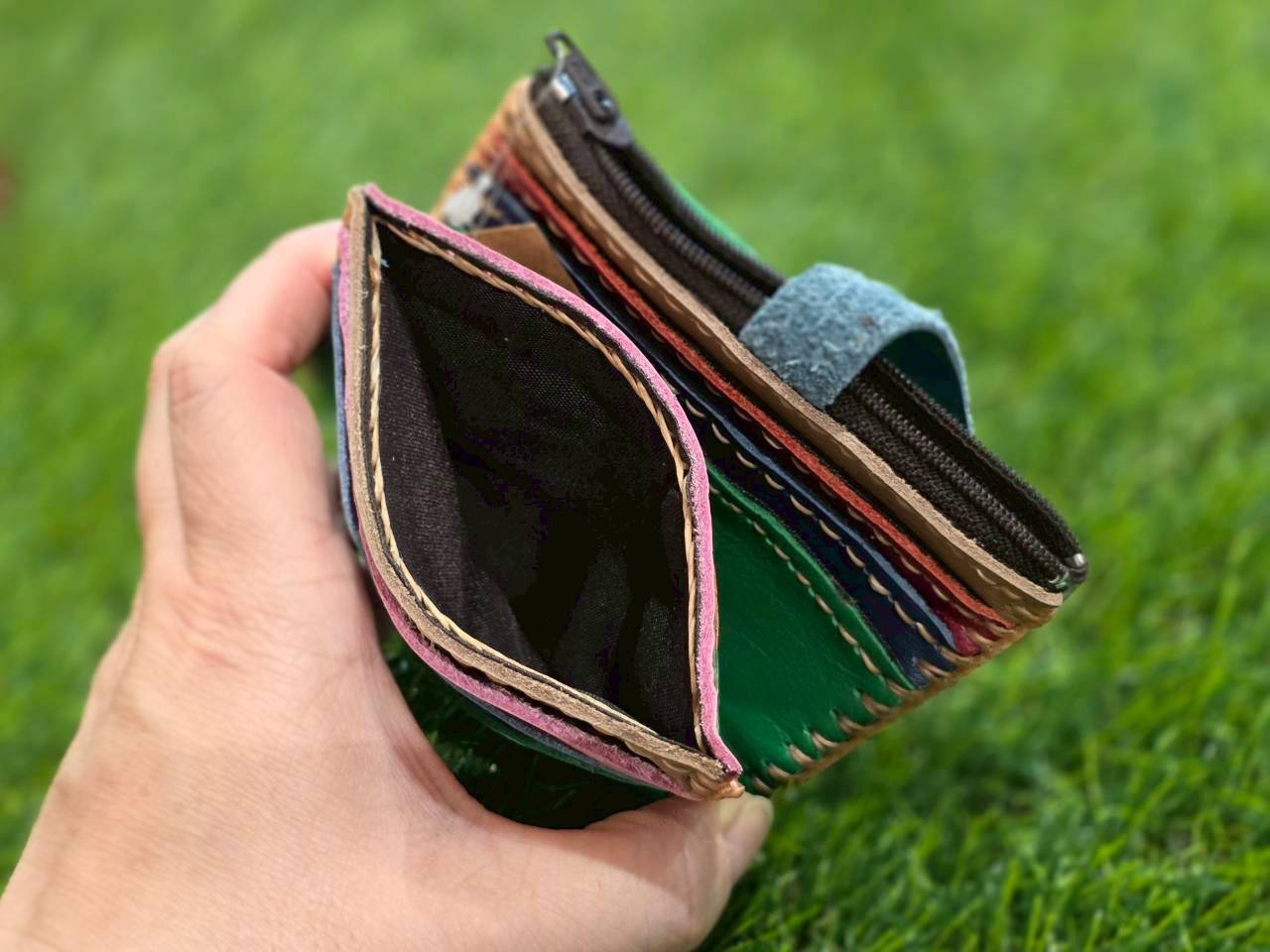 カラフルな本革を使用した