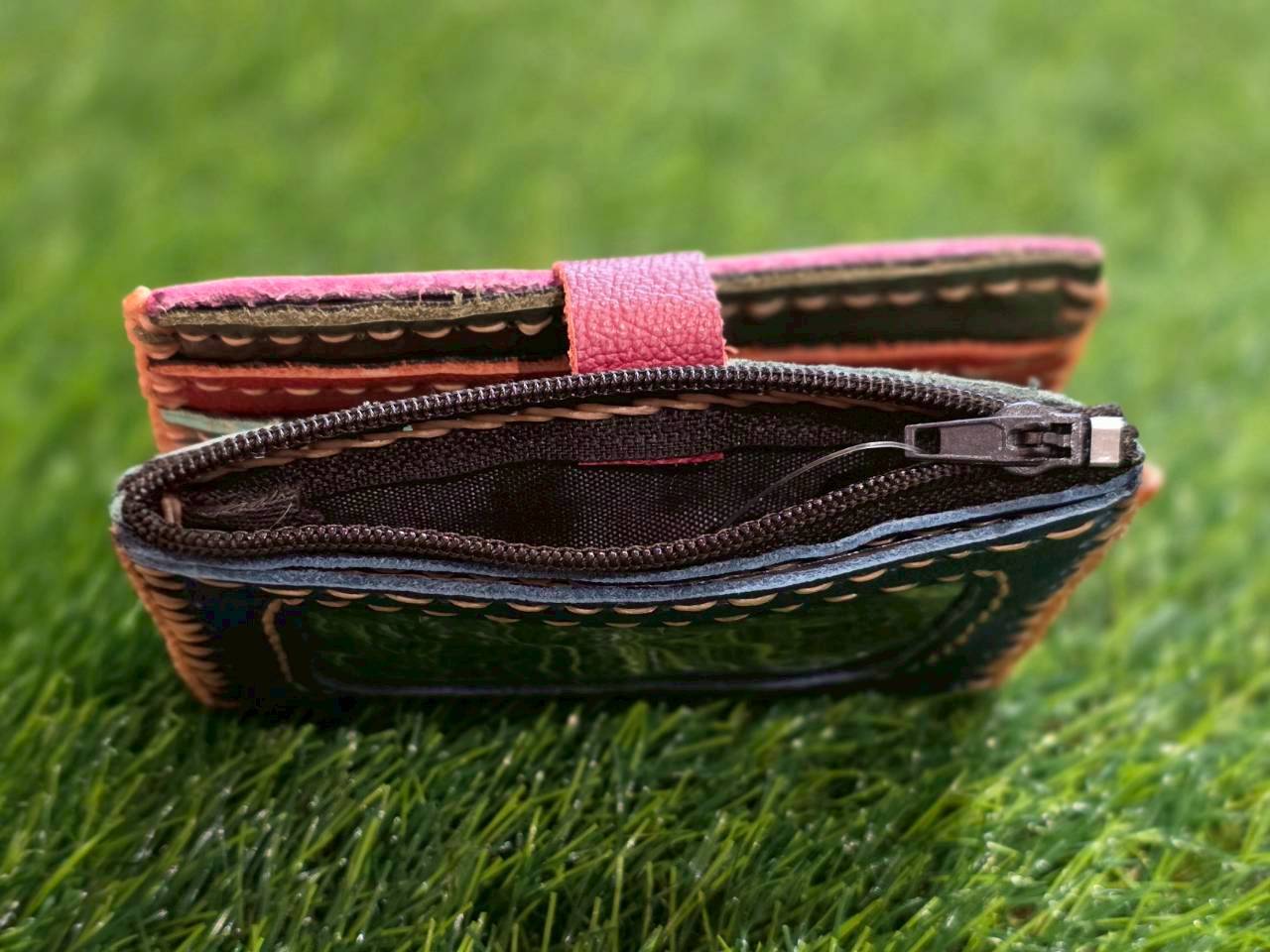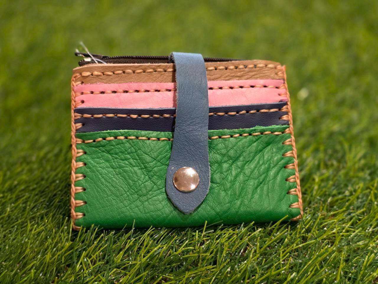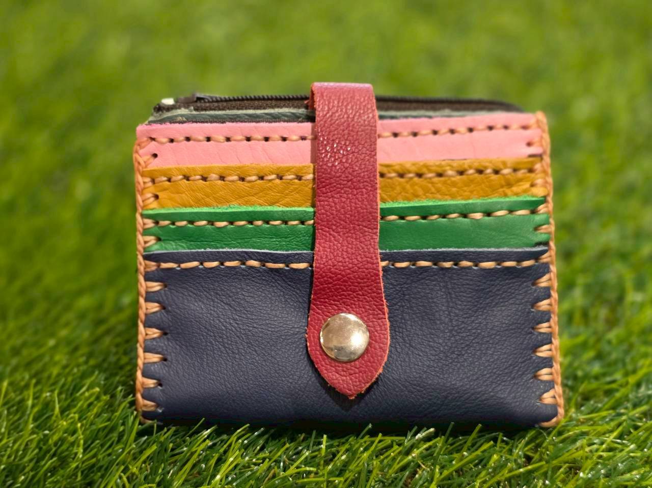 【ハンドメイド】本革カラフル二つ折りカードケース*11枚収納+小銭入れ付き